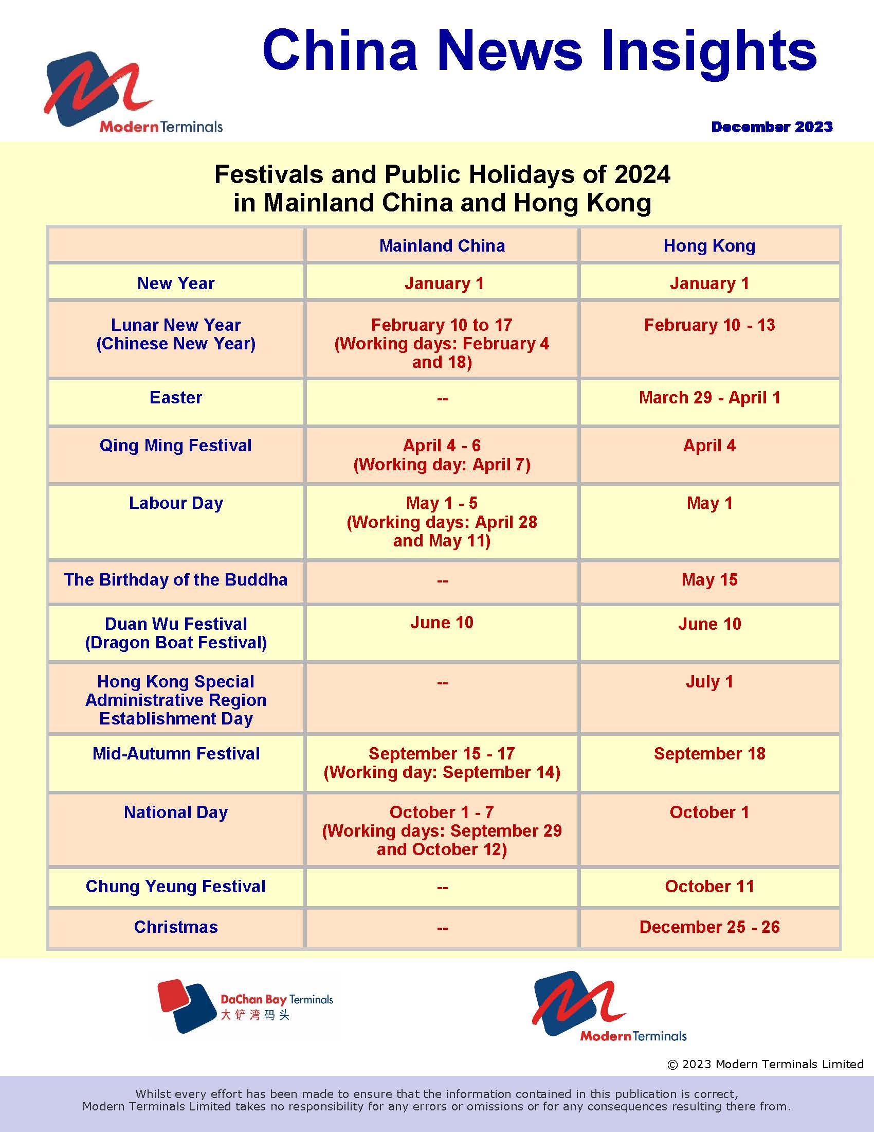 In this festive season, Modern Terminals would like to thank you for your continued support. We wish you a joyous holiday and a prosperous year of 2024! Please see the 2024 Chinese Holiday schedule below.