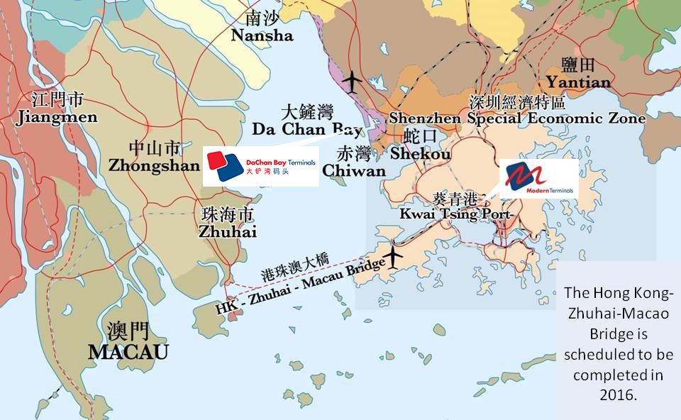 Scheduled for completion in 2016, the Hong Kong – Zhuhai – Macao Bridge will provide a direct link between Hong Kong and the western bank of Pearl River Delta (PRD), reducing travel time between Zhuhai and Hong Kong by as much as 80%. (Endnote 1)