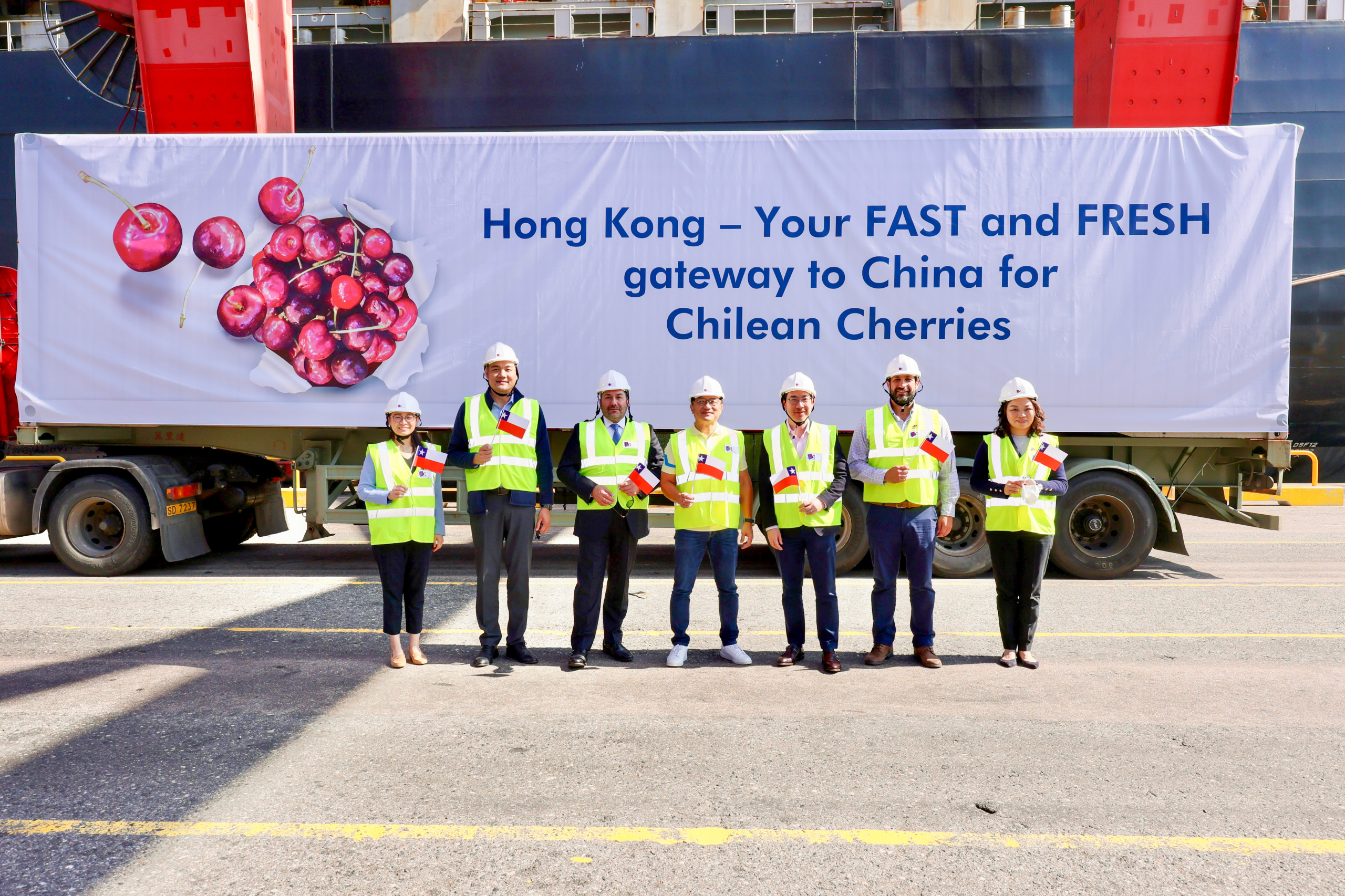 To mark the occasion, representatives from the Chilean and Hong Kong Government as well as the business community were on site to welcome the containers and celebrate Hong Kong’s status as the main gateway for the Chilean Cherry containers.