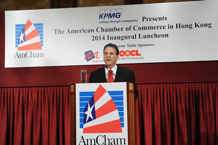 Modern Terminals Chief Commercial Officer (CCO), Peter J. Levesque, was elected as Chairman of the American Chamber of Commerce (AmCham) in Hong Kong. Speaking to an audience consisting of hundreds of AmCham members, US diplomats and business associates at its 45th anniversary inaugural luncheon, Peter called on the Hong Kong Government to address a number of social and economic issues that are essential for maintaining the city’s competitiveness. They included air pollution, education, the income gap, financial services and intellectual property rights, along with transport and logistics.