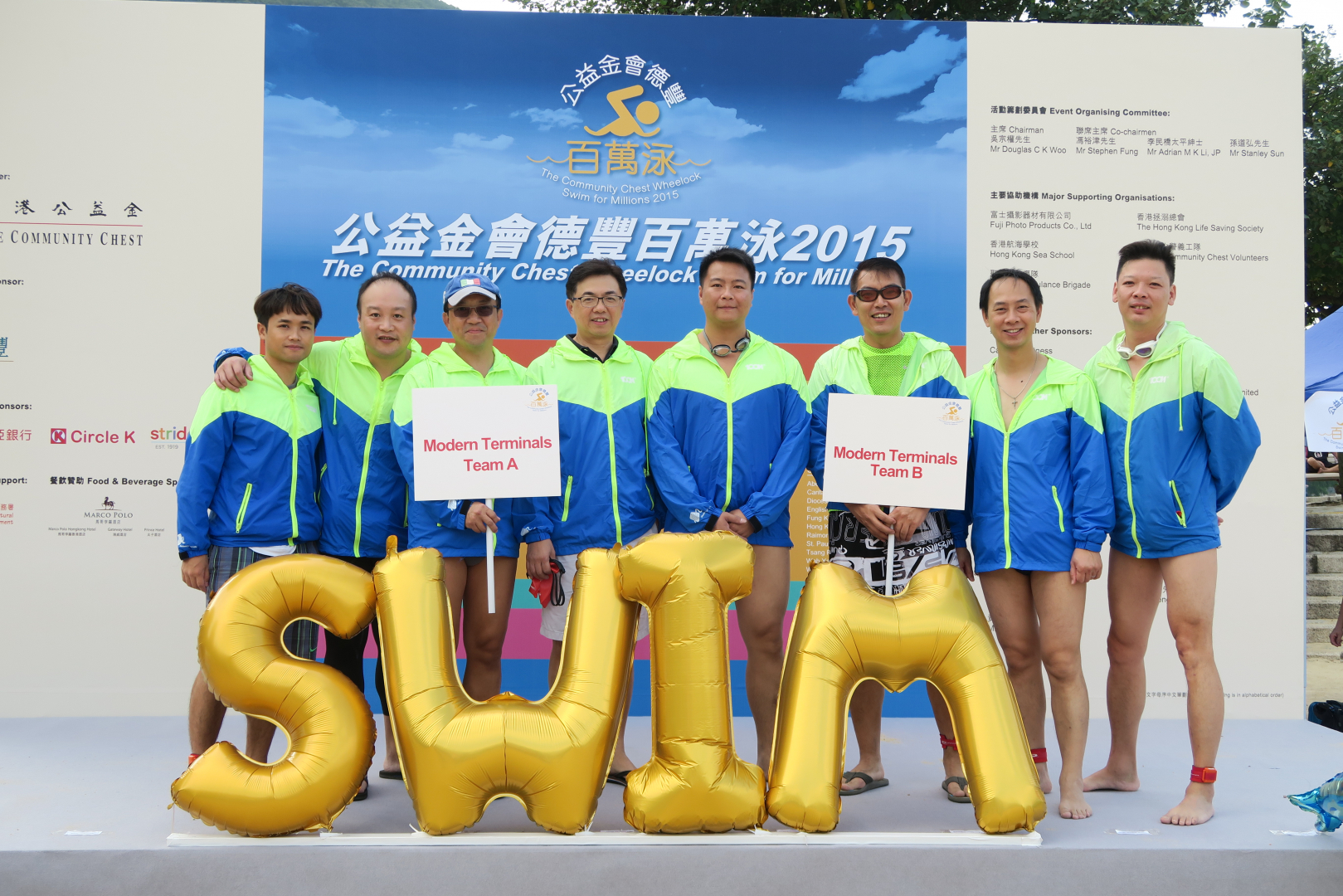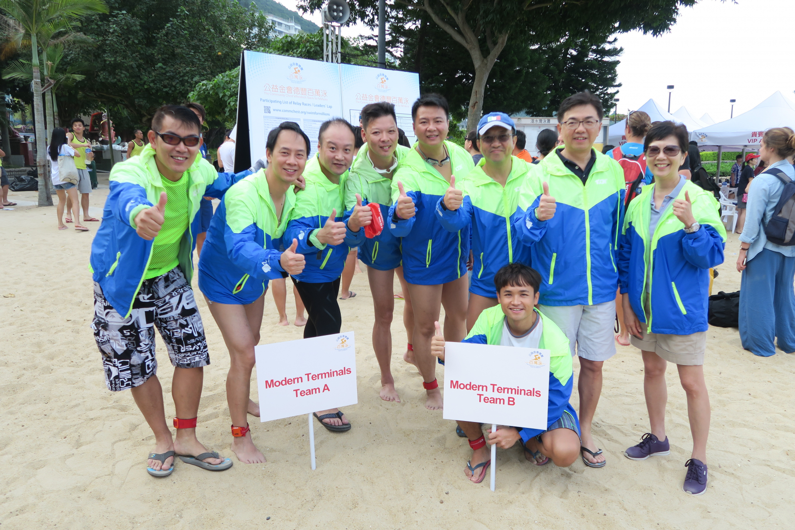 Modern Terminals sponsored 8 staff members in Hong Kong for participation in the annual Community Chest Wheelock Swim for Millions held at Repulse Bay on 25 October 2015. We fielded two teams of 4 for the corporate relay race. One Modern Terminals team beat 61 other corporate teams in the grueling 400m sea swim plus 400m sprint on the beach to become the second runner-up. We are happy to make our contribution to the fund-raising event as donations go to many social welfare agencies through the Community Chest.