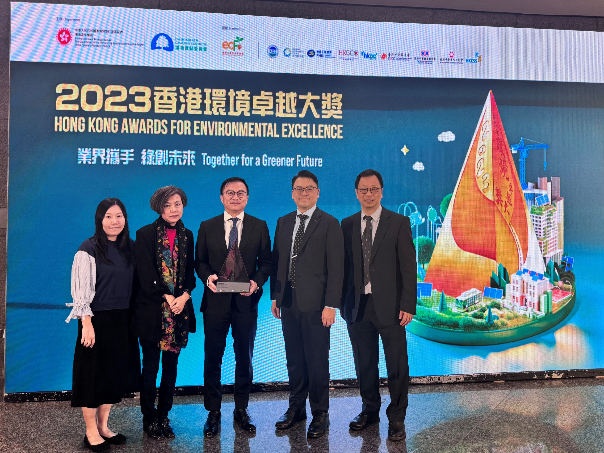 現代貨箱碼頭榮獲「2023香港環境卓越大奬」交通及物流業銅奬,肯定我們在環保工作上的成績。今次是公司第三次獲頒這項殊榮,我們分別於2011年及2019年獲取銅獎及銀獎。